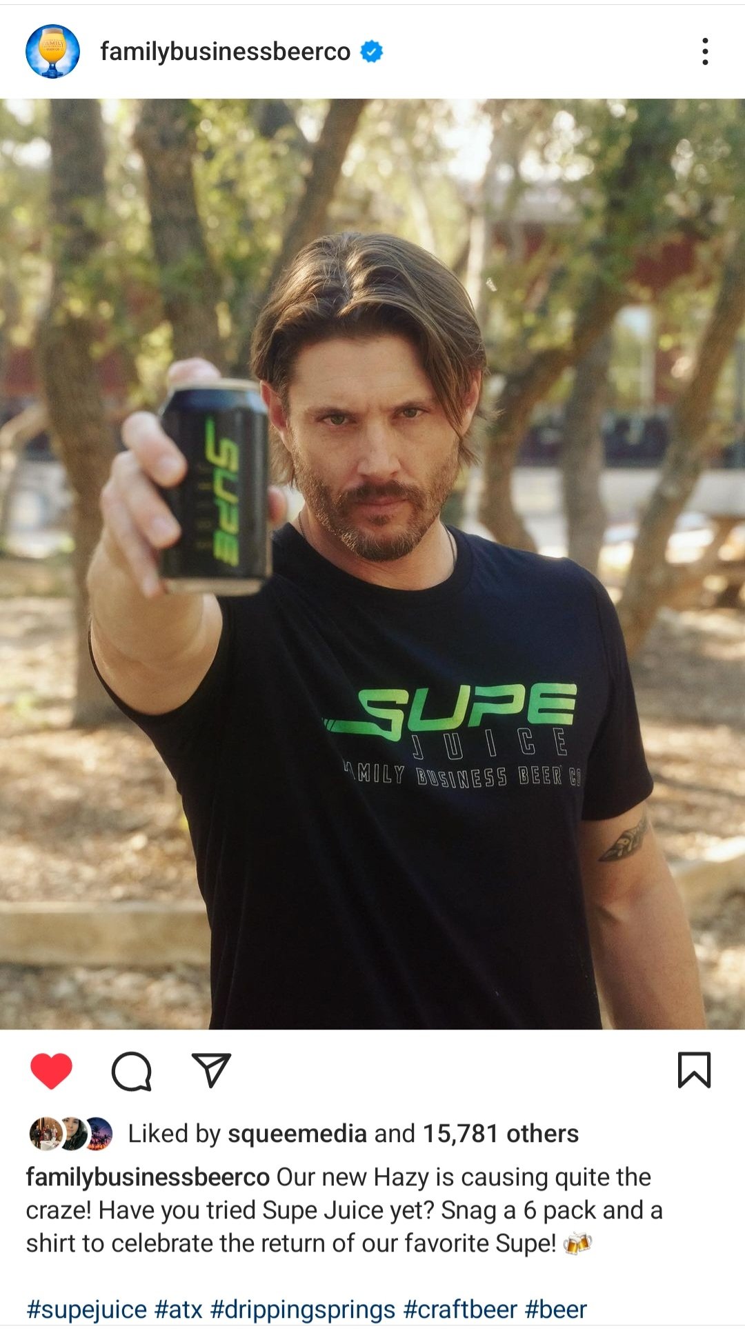 As the weather got warmer back in Austin, our favorite brewery owner did some advertising for Family Business, including the new Supe Juice. Very effective advertising, I might add.